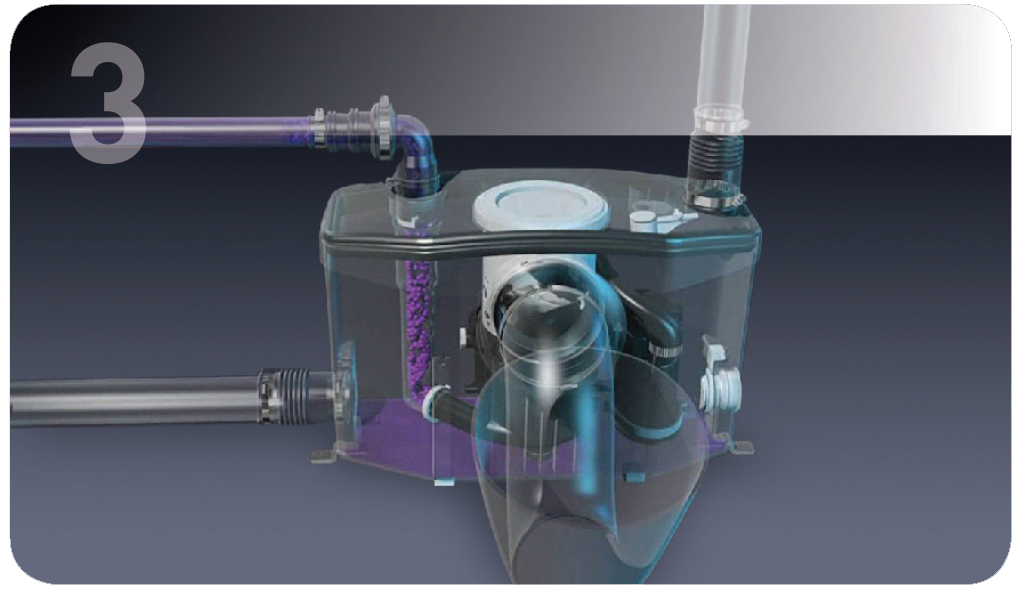 Step 4 : The macerating tank is now empty (apart from the water seal) and the system is ready to be use again.
